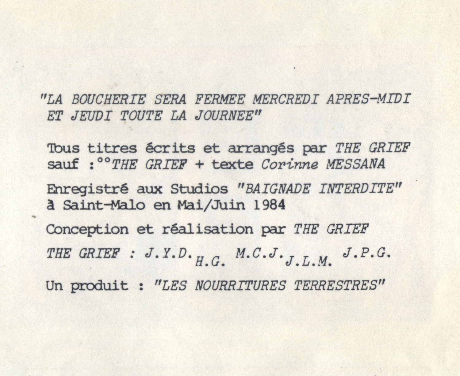 La boucherie sera fermée mercredi après-midi et jeudi toute la journée 1984