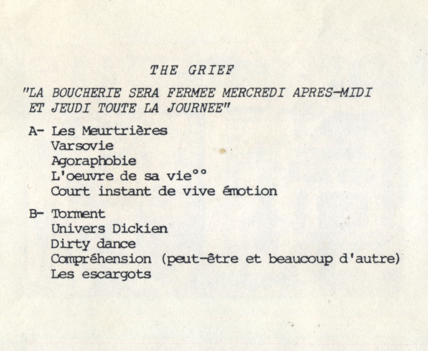 La boucherie sera fermée mercredi après-midi et jeudi toute la journée (NT1) de The Grief
